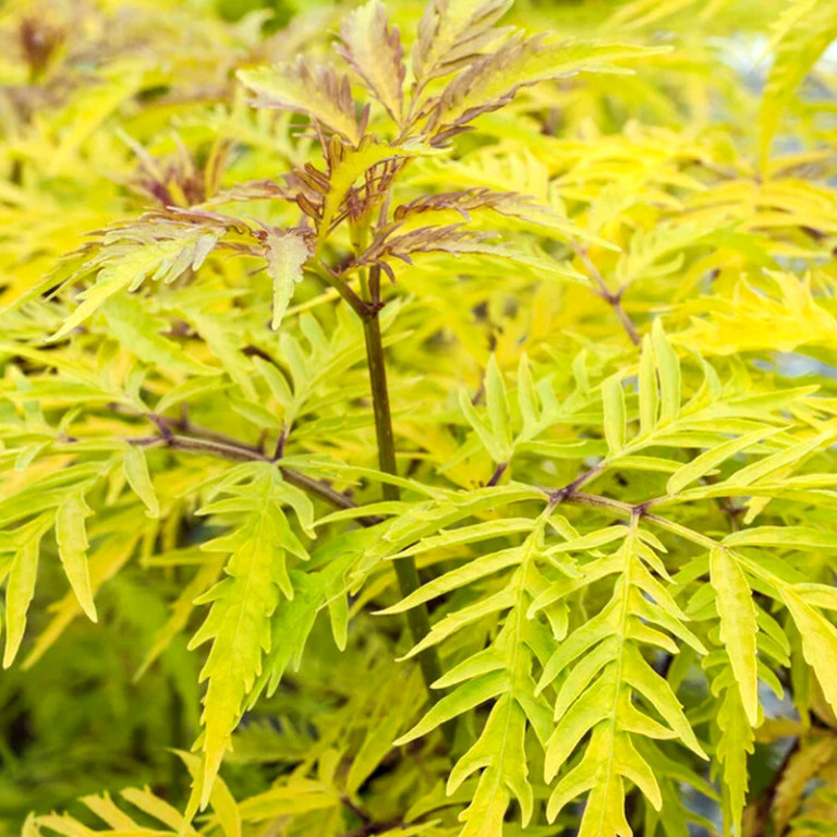 BEZ HROZNATÝ ´SUTHERLAND GOLD´ kont. 3LBEZ HROZNATÝ ´SUTHERLAND GOLD´ - listnatý opadavý keř je okrasná odrůda bezu hroznatého. Zdobí jej kapradinově vykrajované listy jasně zlatožluté barvy, přičemž nové výhony mají růžový až červený nádech. Dorůstá do výšky 1,5 - 2,5 metrů. Kvete od dubna do května drobnými bílými květy, ze kterých se během července vyvinou červené peckovice (kuličky) uspořádáné v bohaté hrozny. Dřevina je zcela nenáročná, nejkrásněji bude vybarvena na plném slunci ve vlhčí humozní půdě. Plně mrazuvzdorná. Kontejner 3L.