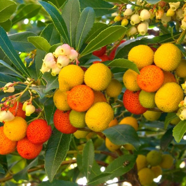 JAHODOVÝ STROM ´MERCURIUS´ kont. 2LJAHODOVÝ STROM ´MERCURIUS´ - je novinka vyšlechtěná ve Francii, která se vyzačuje vyšší mrazuodolností (cca -18°C). Má netradičně úzké kožovité listy tmavě zelené barvy. Květy se objevují od září a jsou bílorůžové zvonkovitého tvaru a rostou ve střapcích. Z nich se později tvoří kulovité plody podobné liči. Plody nejsou vhodné k přímé konzumaci. Jsou vhodné pro výrobu želé, džemů či pálenky. Mají vysoký obsah cukrů (40%), a antioxidační vitamíny a organické látky. Dorůstá do výšky 1,5m.