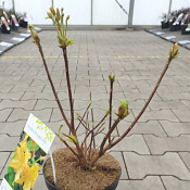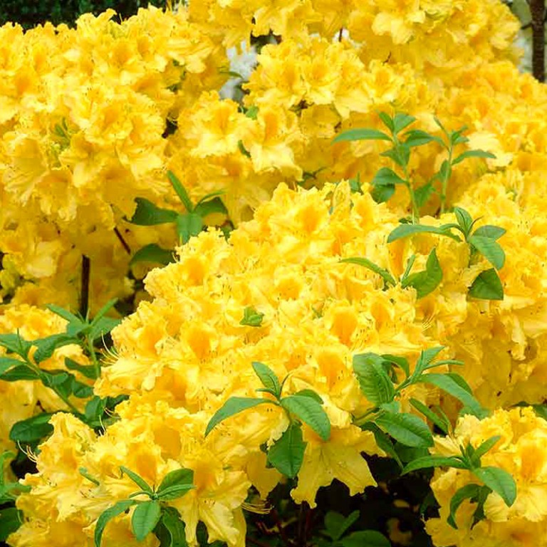 AZALKA ´GOLDTOPAS´ - Překrásná velkokvětá opadavá azalka s atraktivními sytě zlatě žlutými lehce vonnými květy, které kvetou od května do června. Listy před opadem ohnivě zčervenáme. Dodáváme v kontineru 2,5L.