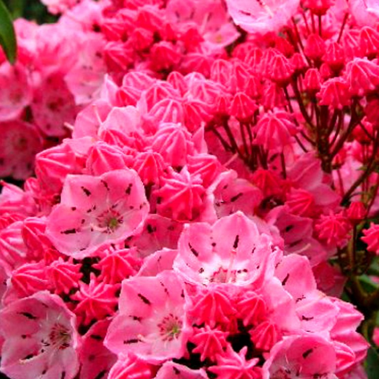 KALMIE ´EWA ´ KALMIE ´EWA´ - (Kalmia latifolia ´Ewa´) je stálezelená dřevina nazývána též jako horský vavřín. Je původem z USA. Keř roste poměrně pomalu, dorůstá do výšky 0,8 až 1,3 m. Kopinaté listy jsou tuhé, tmavě zelené (podobné jako u rhododendronu). Květy, které se objevují ve druhé polovině května, jsou nádherné a to jak zavinuté tak i v plném květu! Jsou ve tvaru růžové misky se světlejším středem a tmavými vínovými čárkami na okvětních lístcích. V květenství je velké množství květů v jednom trsu. Květy neúnavně kvetou téměř celý měsíc. Pěstujeme obdobně jako rhododendrony v kyselé půdě. Pozor na přímé slunce, listy se mohou popálit. Vysazujeme na polostinná stanoviště. Ke kořenům mladých rostlin přihrnujeme na zimu půdu nebo zakryjeme mulčem. Můžeme přihnojovat hnojivem na rhododendrony. Vysazujeme v kombinaci s dalšími vřesovištními dřevinami. Rostlina je jedovatá. Plně mrazuvzdorná. Dodáváme v kontejneru P9.