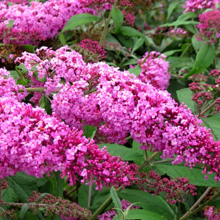 KOMULE DAVIDOVA ´PINK DELIGHT´ - (Buddleia davidii ´Pink Delight´). KOMULE DAVIDOVA lidově zvaná motýlí keř zaujme na první pohled svými atraktivními květy tvořenými velkými laty vonných květů, které lákají i v městském prostředí hejna motýlů na svůj nektar. Je to statný keř s ročními přírůstky až 2 m. Je nenáročný na půdu, ale požaduje chráněné a slunečné místo. Velká rozmanitost barevného květenství umožňuje komponování při výsadbě do větších skupin.