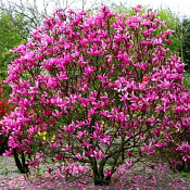 MAGNÓLIE ´SUSAN´ - (Magnolia liliiflora ´Susan´) je listnatá opadavá dřevina, která má charakter keře nobo malého stromu. Dorůstá do výšky a šířky 2,5 - 3,5 m. Dřevina je pomalu rostoucí. Velmi bohatě kvete krátce před vyrašením listů od poloviny dubna do května. Někdy sporadicky vykvete ještě v polovině léta. Květy mají tvar polorozevřených lilií navenek purpurových a uvnitř světlejšího tónu. Velké oválné listy jsou sytě zelené, na podzim zežloutnou. Vysazujeme jako soliteru. Plně mrazuvzdorná.