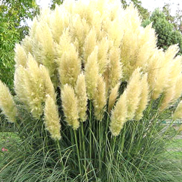 PAMPOVÁ TRÁVA ´SUNNINGDALE SILVER´ kont. 4LPAMPOVÁ TRÁVA ´SUNNINGDALE SILVER´ - trsovitě a kompaktně rostoucí okrasná travina, která v dospělosti dorůstá i do 3 metrů. Dlouhé a úzké listy mají zeleno-šedou barvu a jemným nádechem modré. Z travnatého trsu narůstají vysoké stonky na kterých vykvétají vzdušné chocholy, které mají sněhově bílou barvu. Dodáváme v konteineru 4L. Dorůstá do výšky 3m.