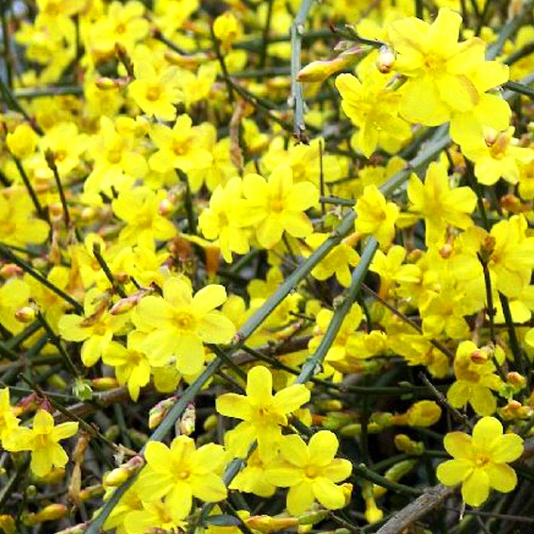 JASMÍN NAHOKVĚTÝ ( Jasminum nudiflorum) kont. 2LJASMÍN NAHOKVĚTÝ - (Jasminum nudiflorum) je opadavý keř s obloukovitými větvemi. Dorůstá do výšky kolem 3m. Pokud není vyvázán k opoře, roste polehavě. Jasně žluté květy vyrůstají na hranatých, tenkých zelených větvičkách již v zimě nebo brzy na jaře (od ledna do března). Listy jsou složené z vejčitých zelených lístků, raší až na jaře. Pokud rostlina namrzne, spolehlivě obrazí. Lze pěstovat jako popínavou rostlinu, kterou je nutné vyvázat ke konstrukcím, nebo jako poléhavou - půdopokryvnou. V kontejneru 2L.