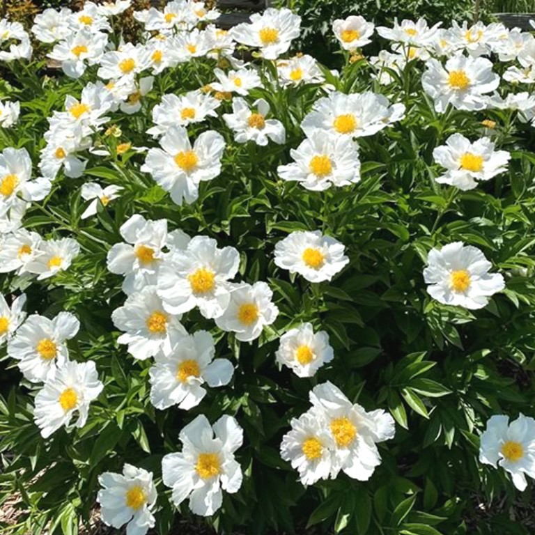 PIVOŇKA ´WHITE WINGS´PIVOŇKA BYLINNÁ (LÉKAŘSKÁ A ČÍNSKÁ) patří k těm nejkrásnějším kvetoucím rostlinám, jejichž nádherné květy s omamnou vůní zdobí naše zahrady. U nás se pěstovala pivoňka lékařská již v 15. století, kdy byla využívána v léčitelství i při výrobě parfémů. Neodmyslitelně patřila do každé vesnické zahrádky. Jedná se o velice dlouhověkou rostlinu, která na jednom stanovišti vydrží i 30 let. Čím je starší, tím krásněji kvete. Do své kvetoucí podoby doroste ale již během 3. roku po výsadbě. Vysazujeme do kvalitní zahradní půdy bohaté na živiny s dostatkem vláhy, kterou potřebuje hlavně v době růstu. Trvalé přemokření ale nesnáší. Květní puky by měly být asi tak 3 – 5 cm pod povrchem. V prvním roce poupata vylomíme, aby se rostlina zbytečně nevysilovala. Pokud pivoňky málo kvetou, jsou buď příliš hluboko vsazené, nebo mají málo živin. Olistění neseřezáváme ihned po odkvětu, ale až na podzim, když listy zrezaví. Pokud ořežeme předčasně, pivoňka v příštím roce pokvete málo. Jsou plně mrazuvzdorné, na zimu nepotřebují ochranu. Vysazujeme jako solitéry, do trvalkových záhonů, kolem chodníků a cestiček.
