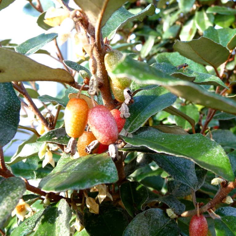 HLOŠINA EBBINGEOVA ´COMPACTA´ kont. 3LHLOŠINA EBBINGEOVA ´COMPACTA´ - v západní Evropě nazývají hlošinu díky stříbřité barvě olistění ruská oliva. Dorůstá do výšky 2-4 m a šířky 1-3 m. Jedná se o stálezelený druh, květy se objevují na podzim, jsou velmi drobné, ale vůně je až do dálky hlavně navečer. Plody dozrávají na jaře duben-květen. Jsou sytě červené až 1,5 cm velké chutově podobné višním. Nejlepší jsou když začínají opadávat. Vysazujeme na slunná až polostinná místa, nenáročná na půdu.