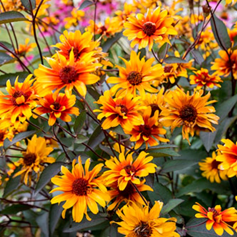 JANEBA ´BURNING HEARTS´ - Vyšší trvalka s krásnými žlutými květy s oranžovým středem, které se hodí do přírodních výsadeb, do smíšených trvalkových záhonů nebo do výsadeb venkovského stylu. Vynikne jako solitéra, ale hodí se i do skupin. Vhodná do vázy.